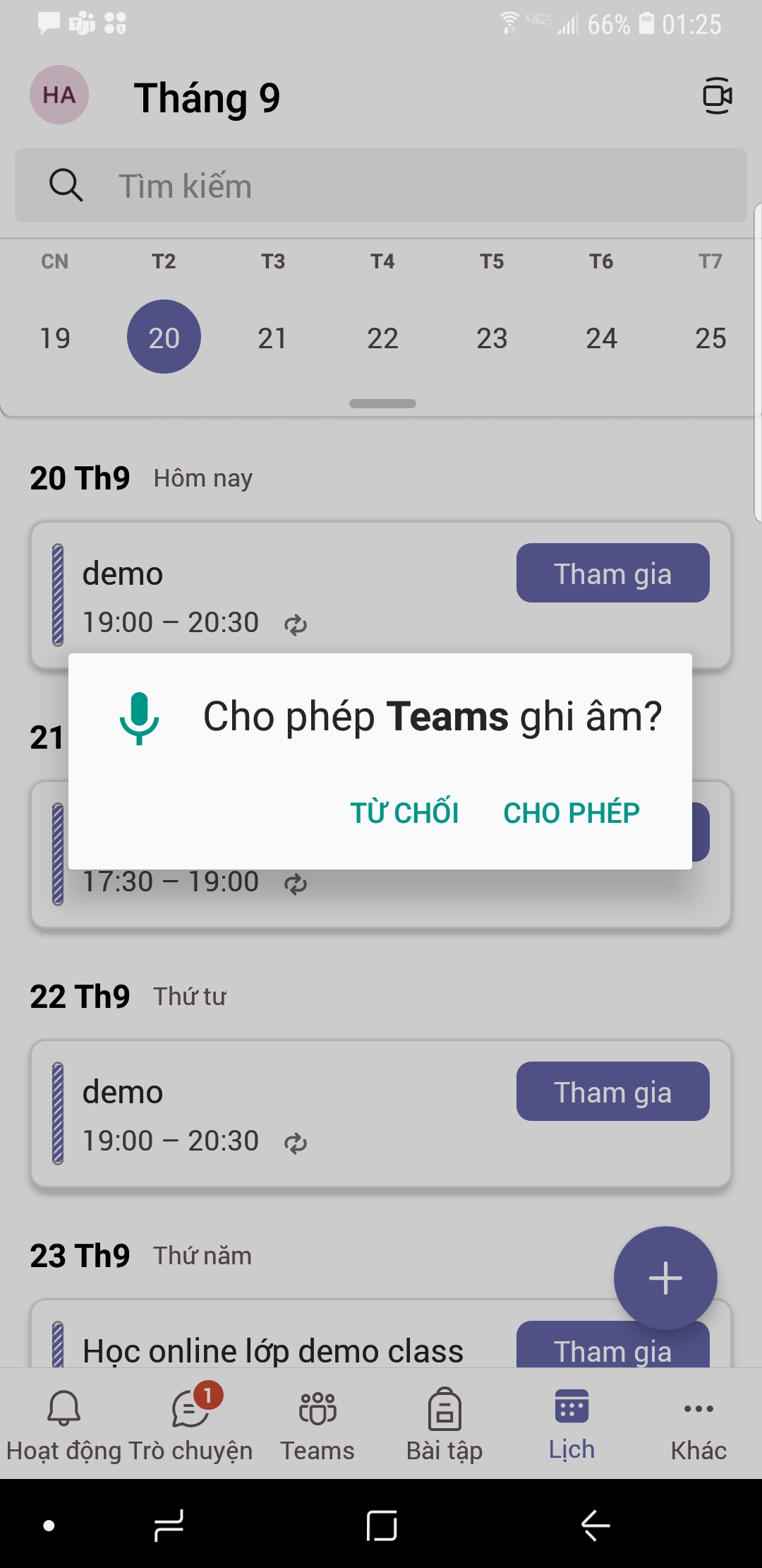 Khi phụ huynh và học viên lần đầu tiên vào lớp học, hệ thống sẽ hỏi yêu cầu cho phép sử dụng CAMERA, MICRO hoặc cho phép ghi âm: