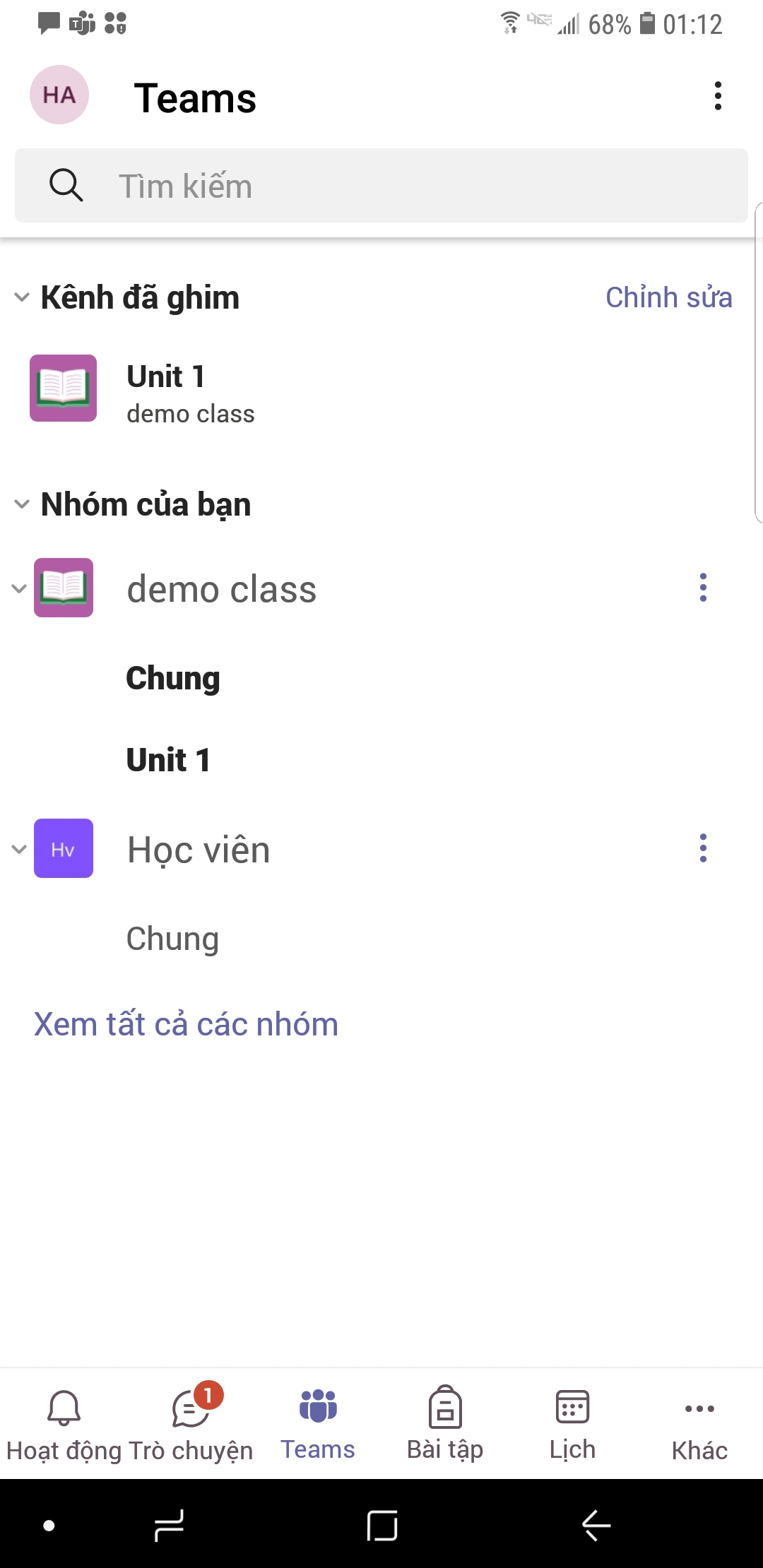Màn hình sẽ hiển thị giáo viên và các thành viên trong lớp học.